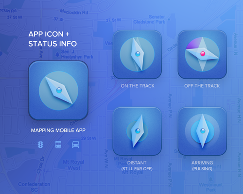 App icon could have been more informative before opening it up. This is the redesign of mapping app that utilizes scale & spin elements on the icon itself, so that user can tell the context merely from reading the info of App.